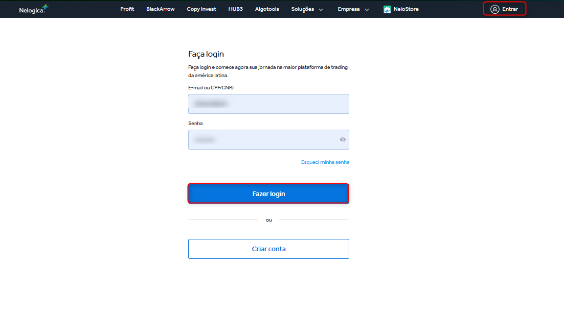 - Acesse o site da Nelogica e entre com suas credenciais: