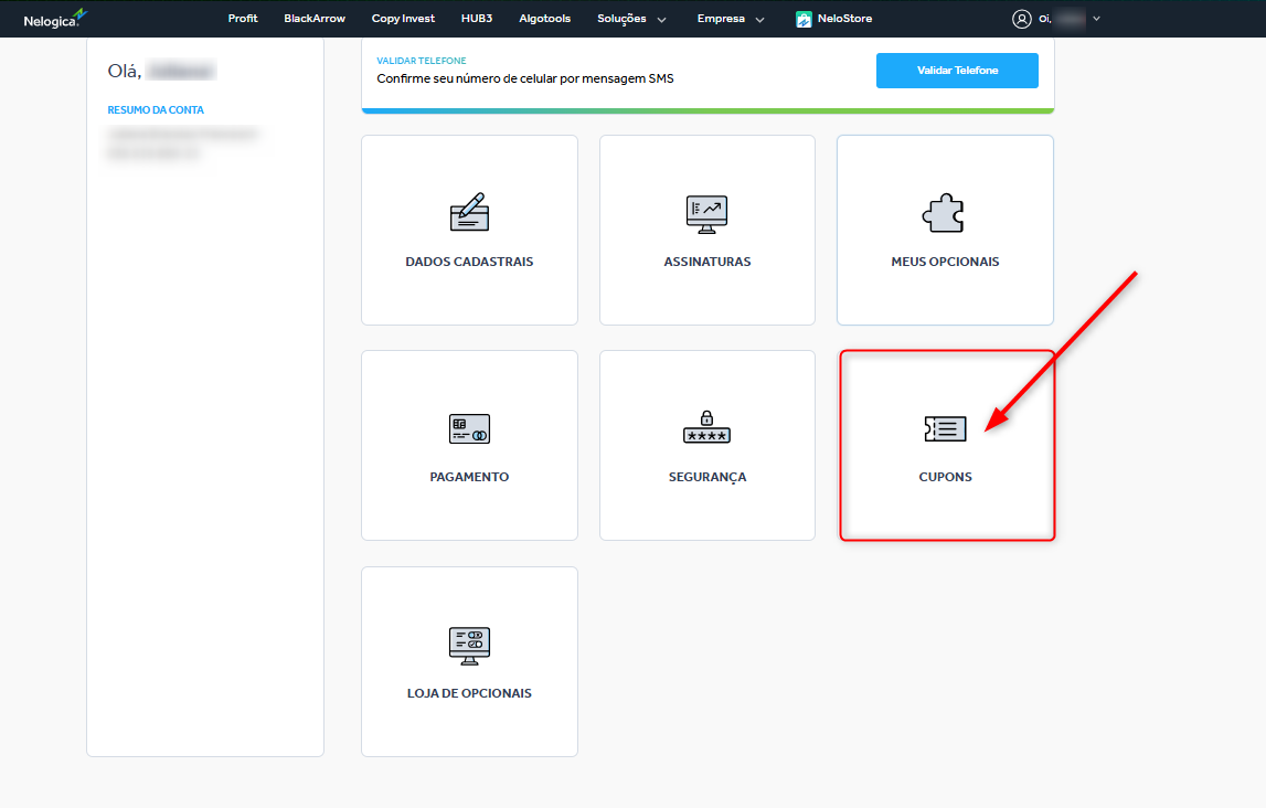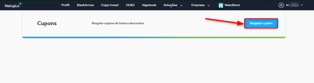 Caso você tenha sido contemplado com um Cupom de Teste de Plataforma, siga os passos a seguir para ativá-lo: